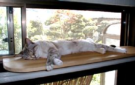 ねこが遊べるように、窓やらん間に棚をつけたり、階段をつくったり。