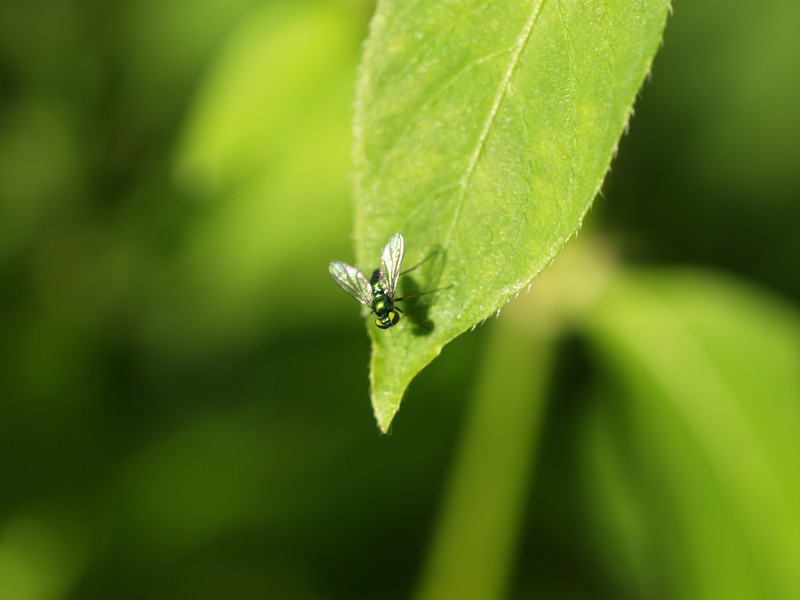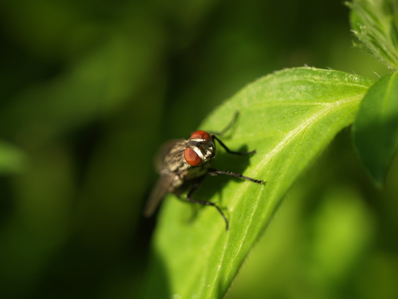 代わりに自宅の庭で撮ってみましたが、そもそもたいした虫がいないうえに、蚊に刺されまいと防虫対策するとほかの昆虫も逃げていってしまう。いるのはハエぐらい(^o^;