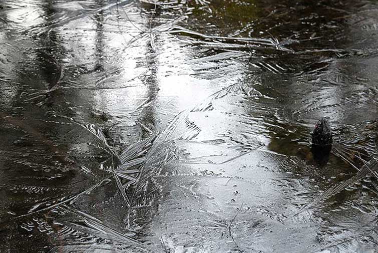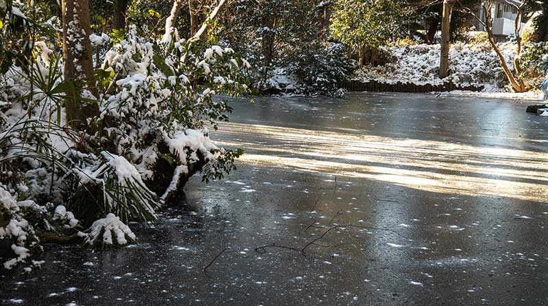 今朝の府中の最低気温はマイナス8.6℃、練馬でもマイナス5.5℃まで下がりました(アメダス)。そりゃ、池も凍りますよね。