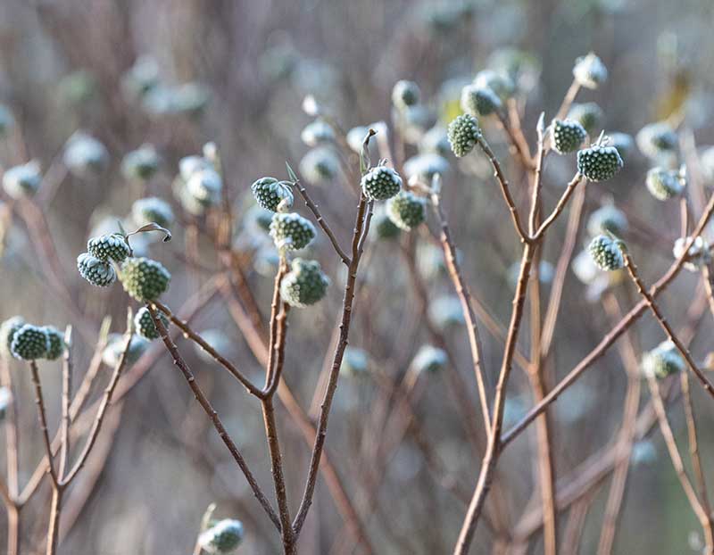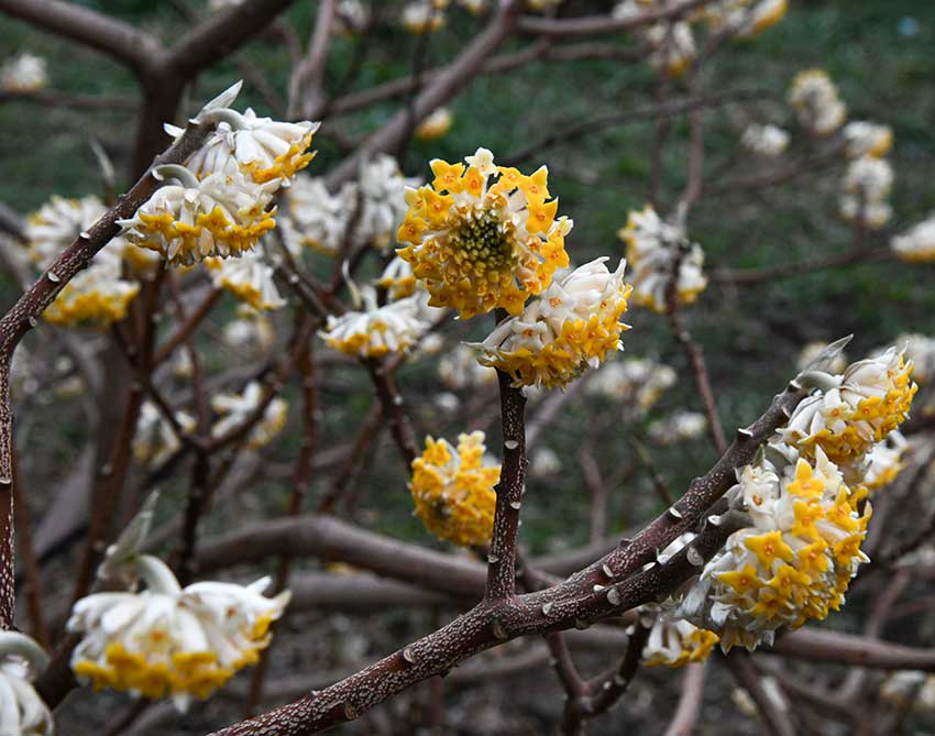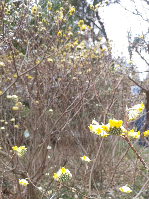 > 吉祥寺通りから公園に下りてすぐの角では、 > ミツマタの花の蕾が膨らんできていました。