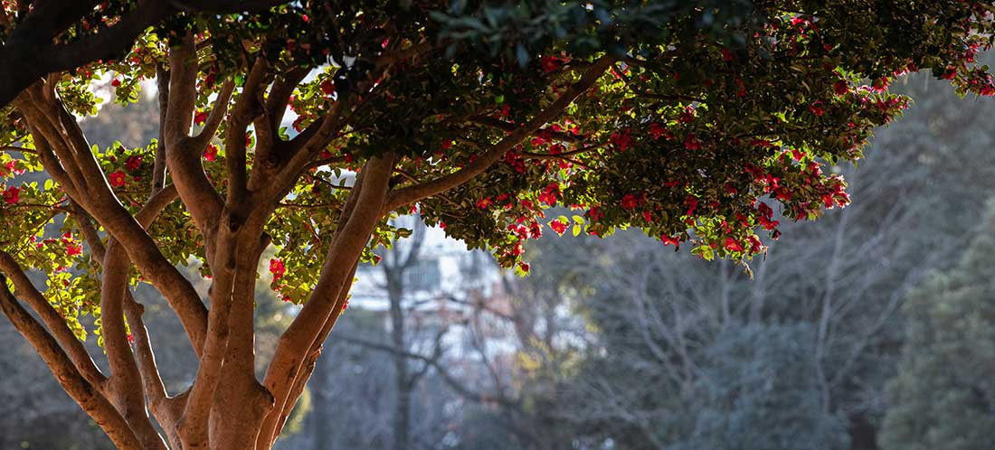 写真はいつもの光が丘公園のサザンカ。今朝の撮影です。 まだ花が楽しめます。