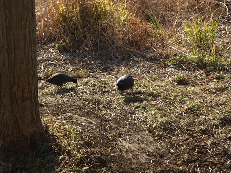 > おでこの白い鳥はオオバンですかね。水鳥らしいけど。