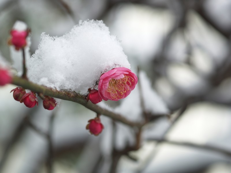 こうすけさんの雪かぶりの寒紅梅が可愛い(^o^)