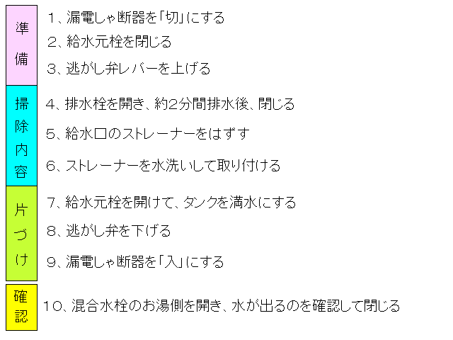 貯湯式でなければ水抜き洗浄は不要だと思います。 追い焚き機能つきのお風呂では配管洗浄が必要です。 これも初めてやりました。だめだめ。